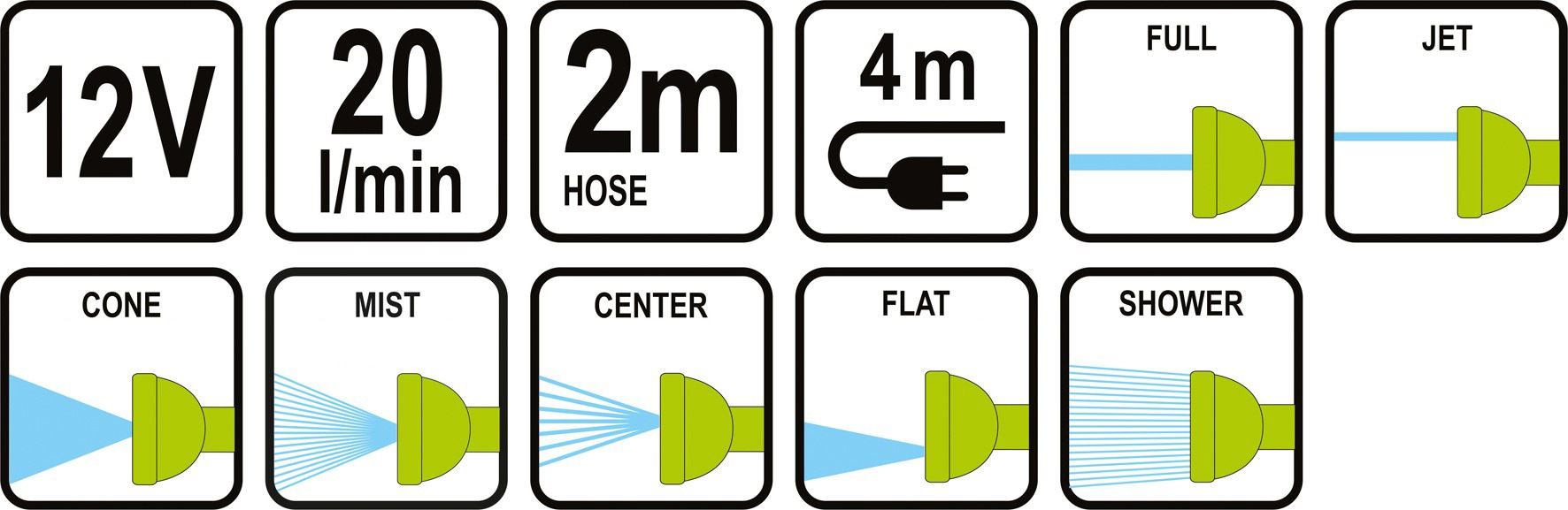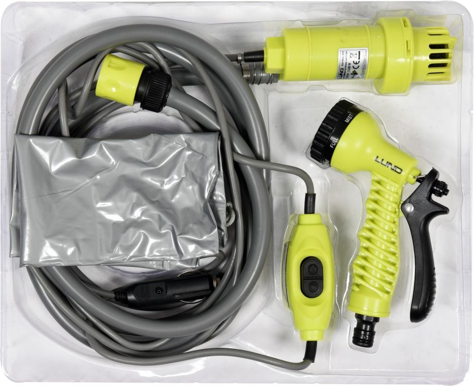 Ukazać szczegółowy opisPrzenośny prysznic wyposażony w pompę elektryczną.