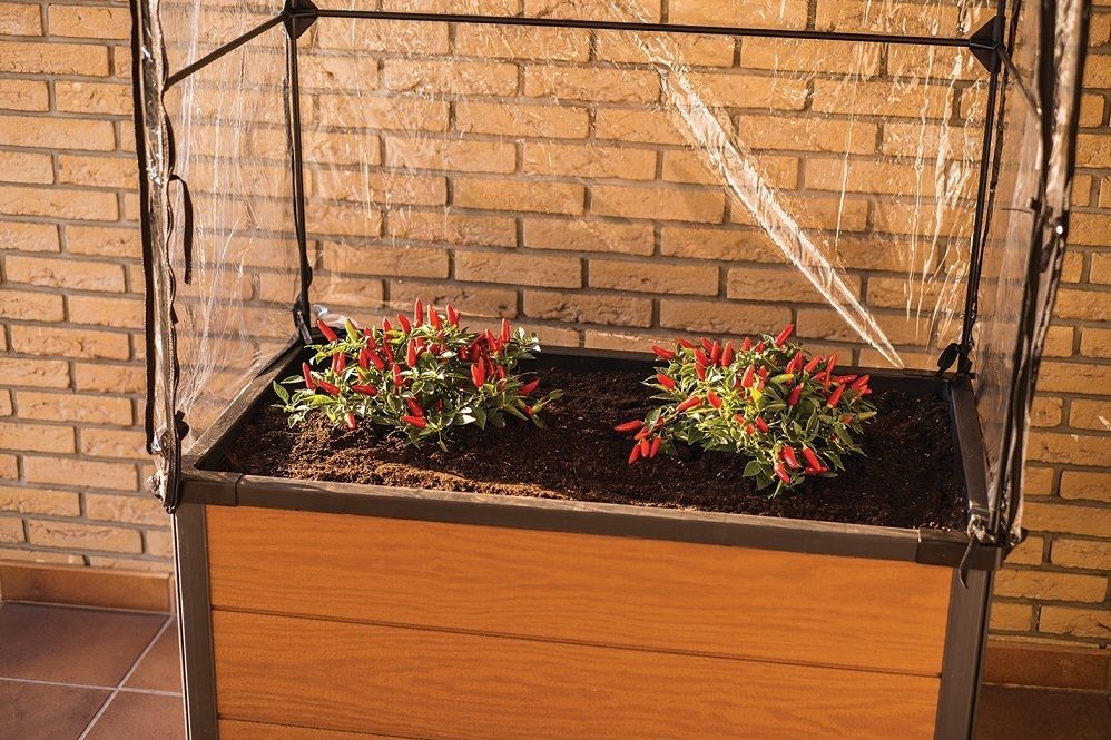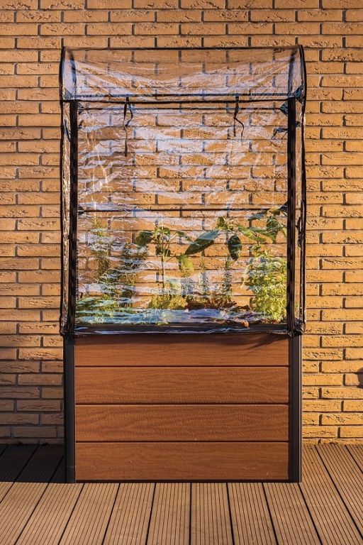 Produkty klonowe są wykonane z najnowocześniejszego materiału Evotech firmy Keter, który zapewnia niezrównaną trwałość na zewnątrz, jest łatwy w montażu i nie wymaga konserwacji, dzięki czemu możesz cieszyć się owocami swojej pracy bez żadnych kłopotów. Materiał Evotech jest wykonany z doskonałej imitacji drewna, dzięki czemu produkt idealnie pasuje do każdego ogrodu. Szklarnia klonowa z osłoną szklarniową pozwala na zbieranie własnych warzyw i ziół, nawet gdy jest zimno, deszczowo i wietrznie.