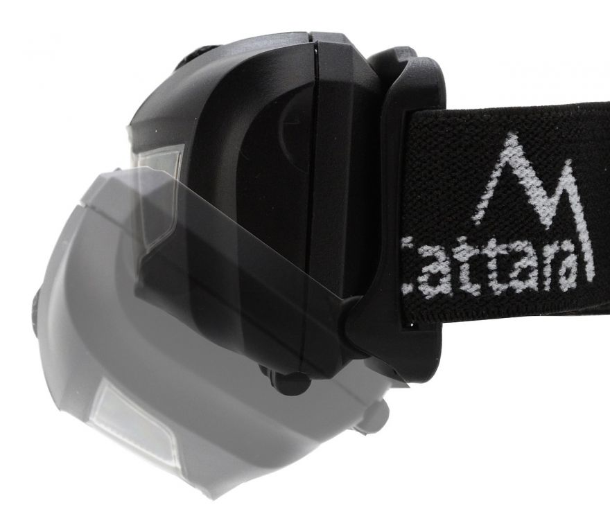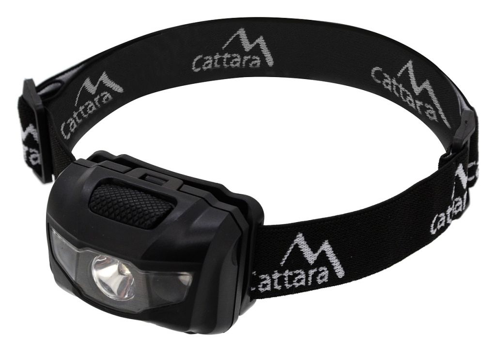 Standardowa wodoodporna latarka czołowa, wyposażona w trzy diody LED o mocy 1 W i luminancji 80 lm.