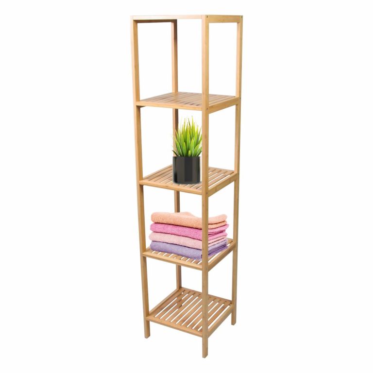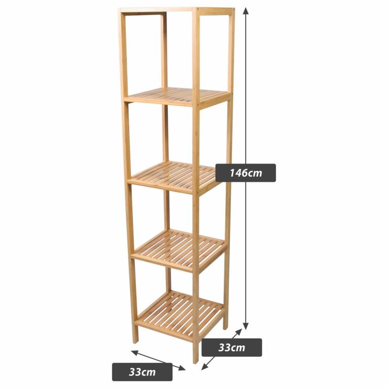 Regał bambusowy, 5 półek, kwadratowy 33 x 33 x 146 cm.