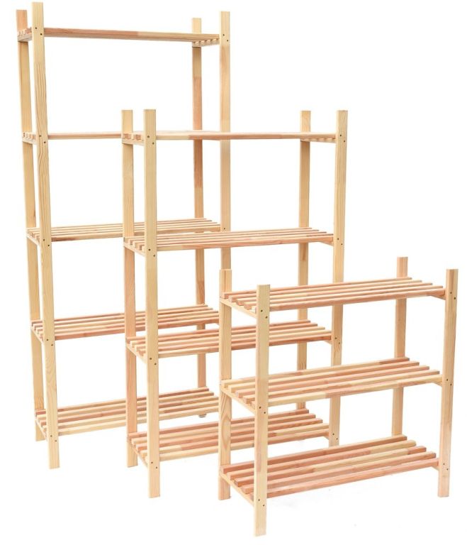 Ukazać szczegółowy opisRegał z półkami z naturalnego drewna sosnowego. Certyfikat FSC