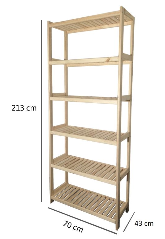 Regał drewniany 70x213x43 cm, 6 półek, sosna, bez lakieru