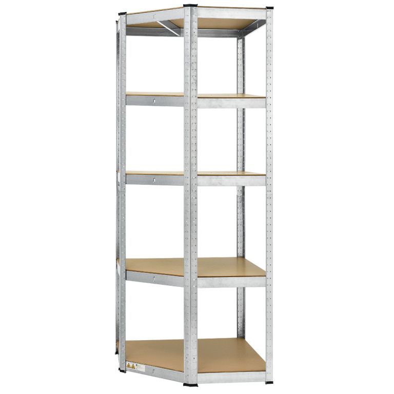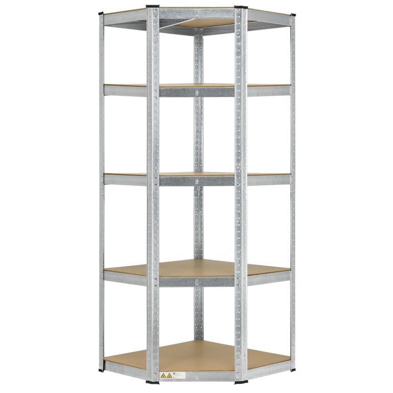 Wykorzystaj każdy centymetr przestrzeni! Narożny regał pozwala zorganizować narzędzia, zapasy i akcesoria w sposób wygodny i estetyczny. Pięć półek zapewnia miejsce na wszystko, co chcesz mieć pod ręką.