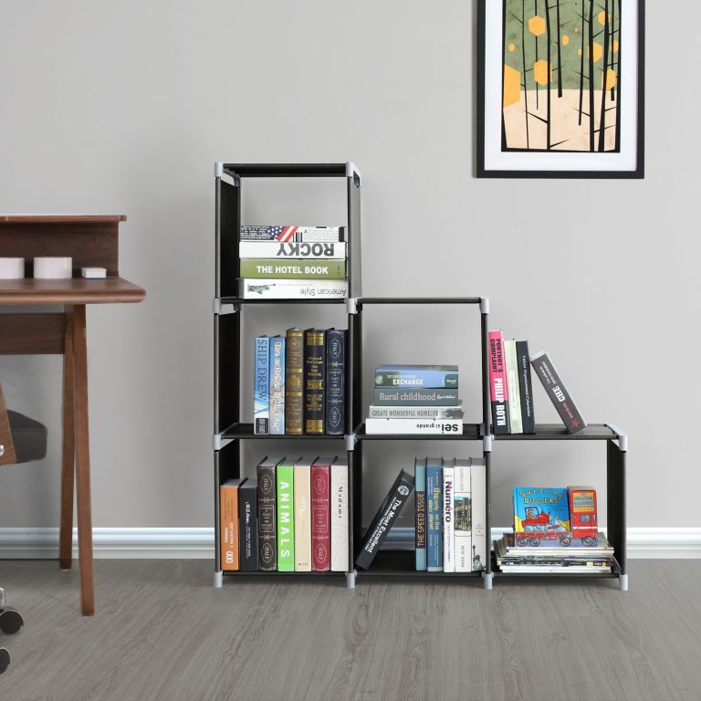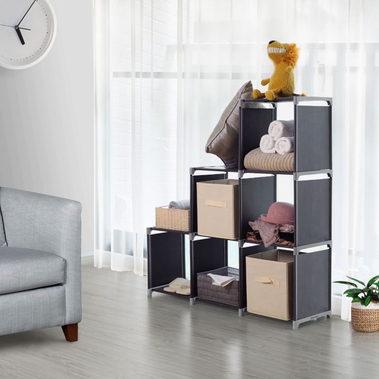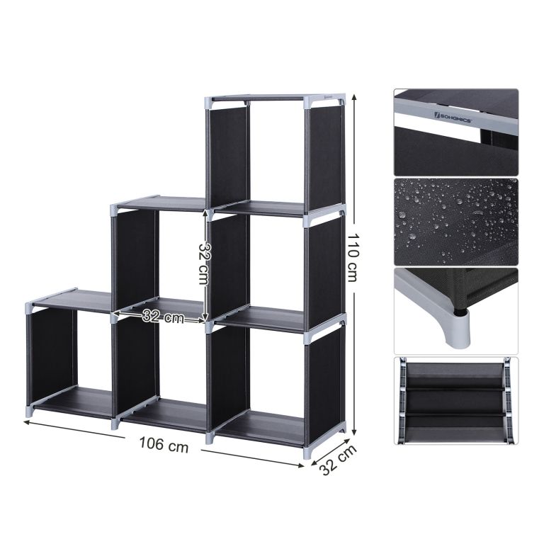 Regał schodkowy tekstylny 6 kostek, czarny, 105x30x105 cm