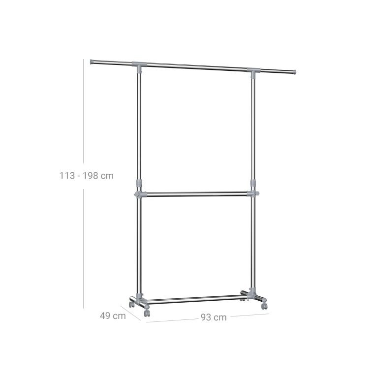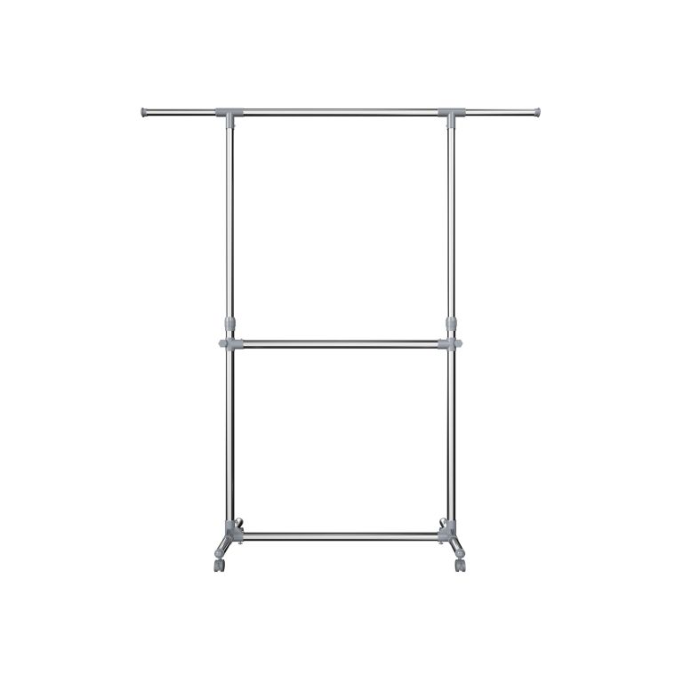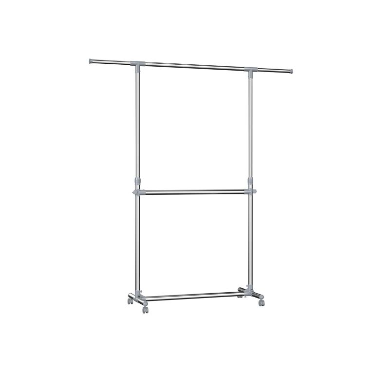 Regulowany stojak na ubrania z dwoma drążkami i kółkami