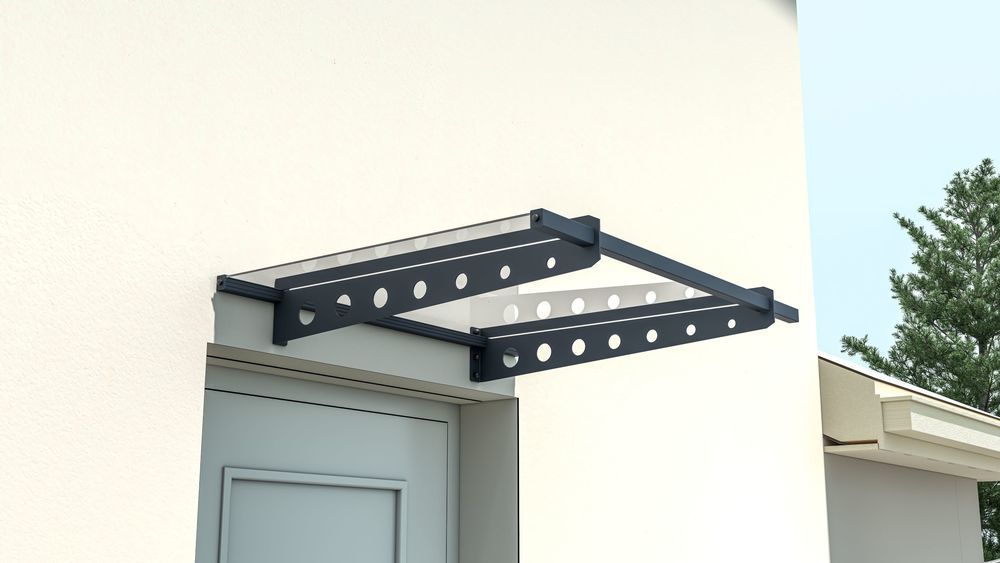 Wiata wejściowa zapewnia doskonałą ochronę przed deszczem. Składa się z płyty plexi o grubości 4 mm, metalowych wsporników, aluminiowych uchwytów. Prosty i szybki montaż.