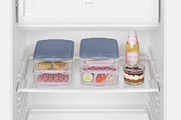 Pojemniki zapewniają przejrzyste i oszczędzające miejsce przechowywanie żywności. Nie zawierają BPA i innych szkodliwych substancji.