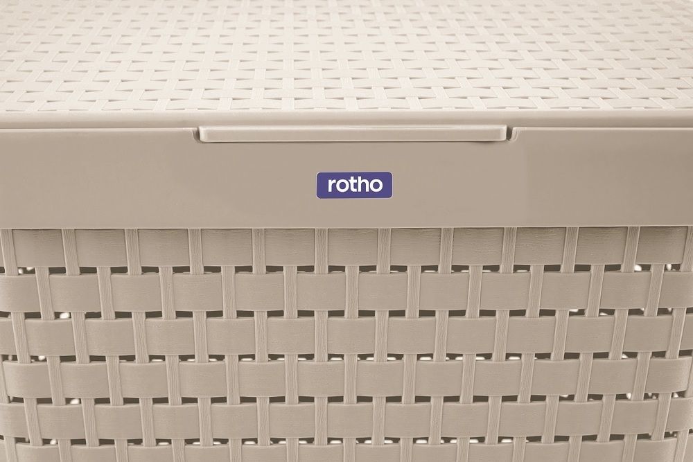 Plastikowy kosz na bieliznę w stylu rattanowego splotu wyróżnia się nowoczesnym designem i jakością wykonania szwajcarskiej marki Rotho. Kosz wykonany jest z trwałego i mocnego tworzywa sztucznego i ma pojemność 55 l.