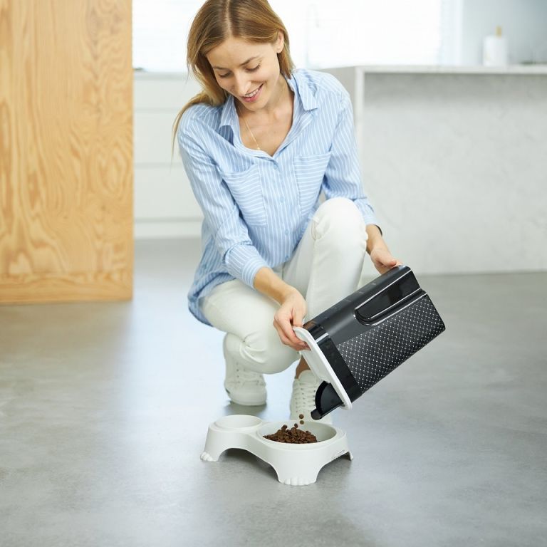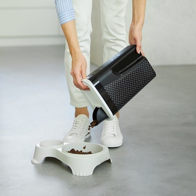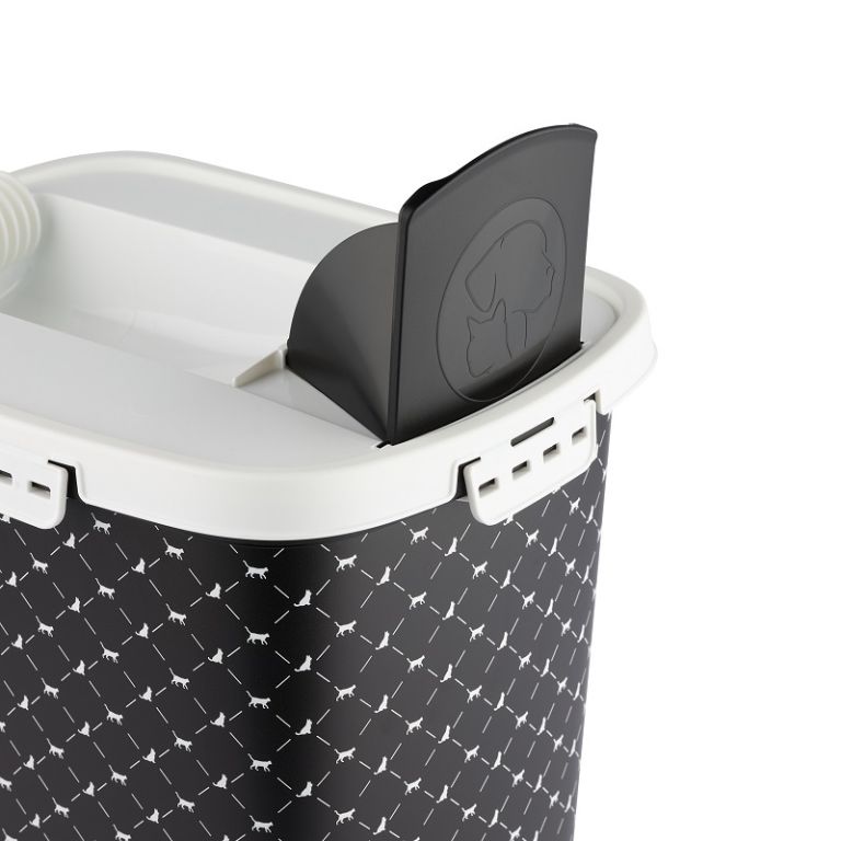 Pudełko do przechowywania suchej karmy dla łatwego dozowania i opróżniania karmy dzięki odchylanemu dozownikowi w pokrywie. Ergonomiczny kształt pozwala na wygodny chwyt. Dzięki swoim rozmiarom pojemnik można wygodnie myć w zmywarce.