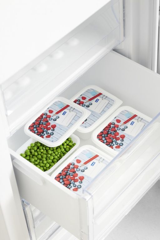 Ukazać szczegółowy opisPrzechowuj żywność w zamrażarce lub lodówce w pojemnikach, które zapewniają dłuższy okres przydatności do spożycia i izolują zapach.