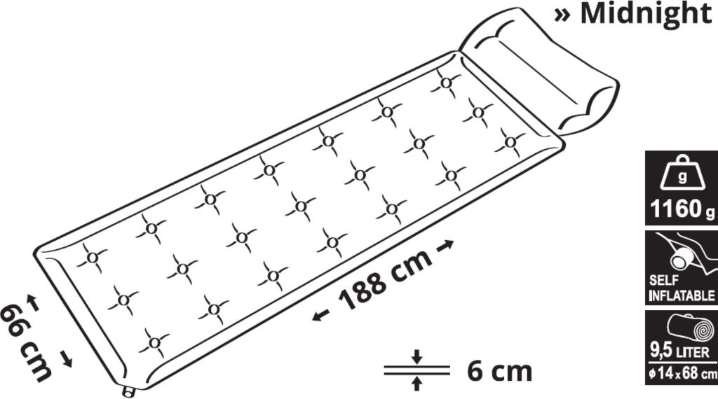 Samopompująca się karimata MIDNIGHT 188x66x6cm z poduszką