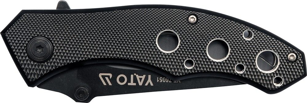 Nóż został zaprojektowany specjalnie dla miłośników noży i hobbystów Yato. Ostrze wykonane jest z wysokiej jakości stali nierdzewnej, lakierowanej na matową, czarną i ma wypukłości od góry i od dołu, aby zapobiec ześlizgnięciu się dłoni i możliwym obrażeniom podczas użytkowania.