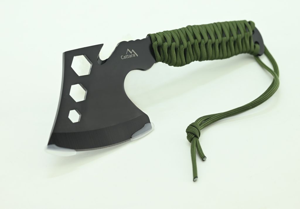 Niewielka waga wynosząca zaledwie 280 g ułatwia przenoszenie. Praktycznymi akcesoriami są uniwersalne klucze do nakrętek zintegrowane z wewnętrzną częścią siekiery oraz przecinak do lin umieszczony w górnej części.