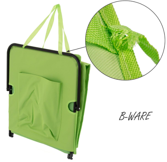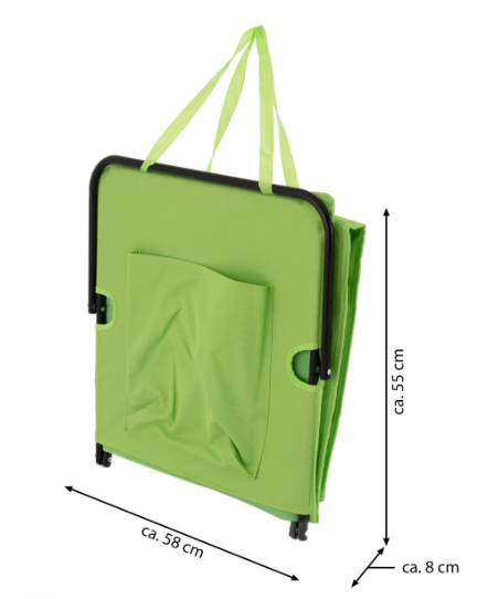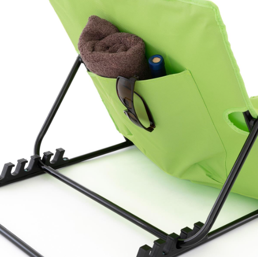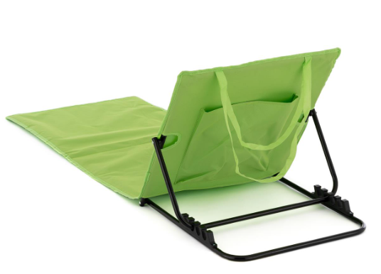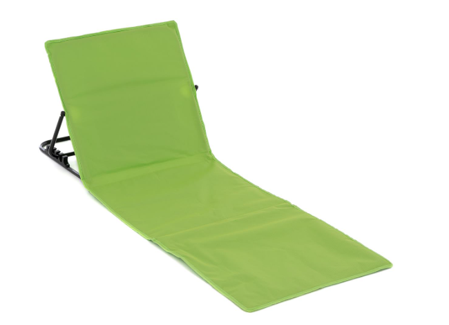 Wygodna, składana mata plażowa z oparciem w zielonym kolorze. Idealna na plażę, camping i do ogrodu.