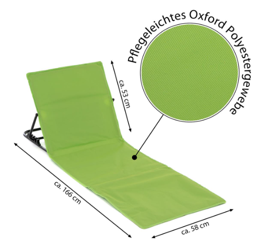 Składana mata plażowa z oparciem, zielona, 158x58 cm, Oxford