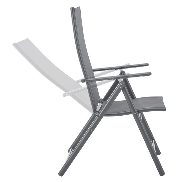 Regulowane krzesło ogrodowe Calena z ergonomicznym kształtem, oddychającym siedziskiem i nośnością do 110 kg. Oparcie można ustawić w 7 pozycjach.