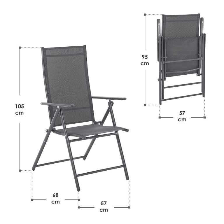 Wymiary krzesła rozłożonego: 57 × 68 × 105 cm