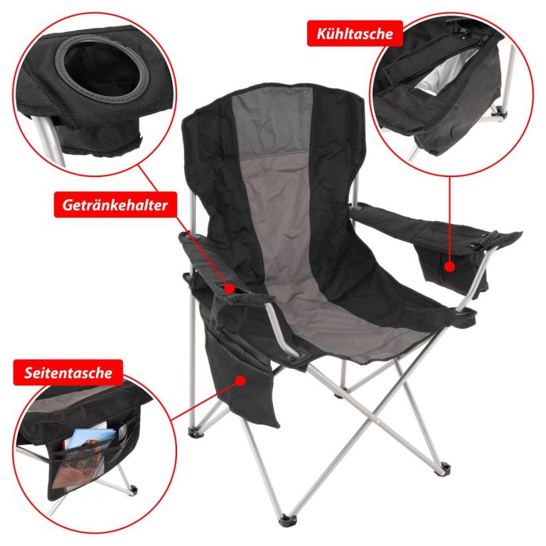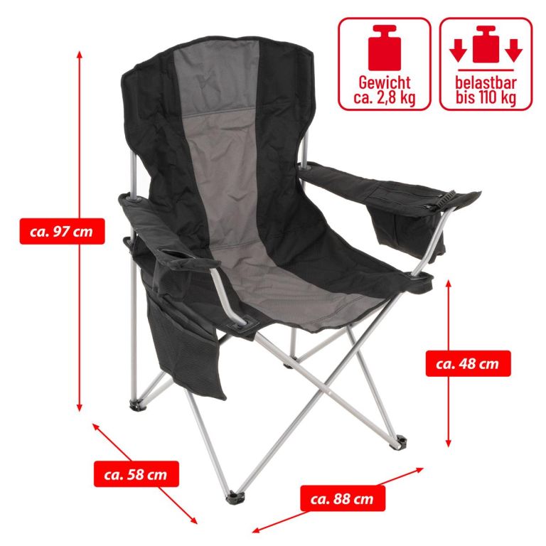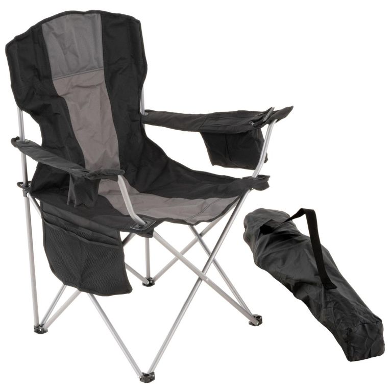 Składane krzesło kempingowe XL czarne/szare