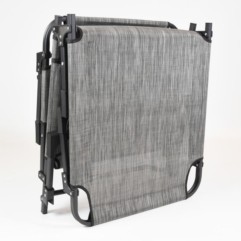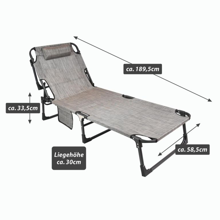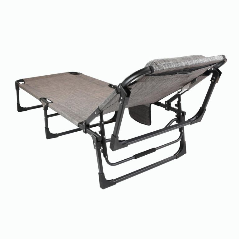 Składany leżak aluminiowy regulowany w 4 pozycjach, zapewniający optymalną, relaksacyjną pozycję zarówno do leżenia, jak i siedzenia. Rama wykonana jest z szarej malowanej stali, pokrycie z szarego poliestru, a nogi z solidnej stali. Leżak jest odporny na warunki atmosferyczne i łatwy w utrzymaniu. Materiał jest miękki i dopasowuje się do Twojego ciała. Leżak oferuje maksymalną elastyczność, jest praktyczny, wygodny, stabilny, solidny, lekki i odporny. Szczególnie latem jest często używanym meblem w ogrodzie, na tarasie lub podczas biwakowania.