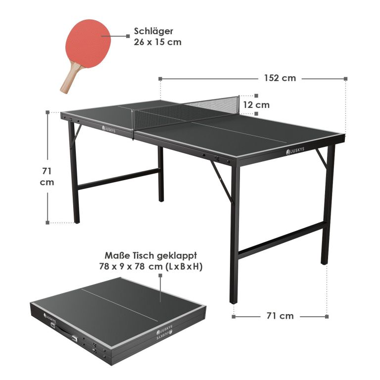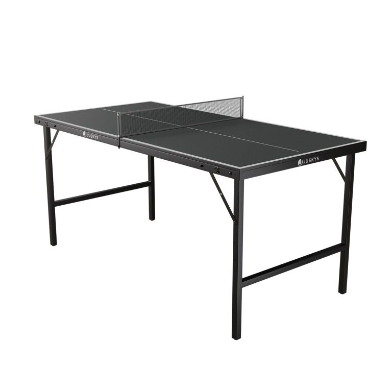 Mini stół do tenisa stołowego to świetny wybór dla każdego, kto chce cieszyć się zabawą przy ping-pongu nawet w mniejszych przestrzeniach. Dzięki kompaktowym rozmiarom pasuje do salonu, pokoju dziecięcego lub pod zadaszoną taras. Stół można łatwo rozłożyć, rozpocząć grę, a po zakończeniu ponownie złożyć do płaskiej walizki z uchwytem.