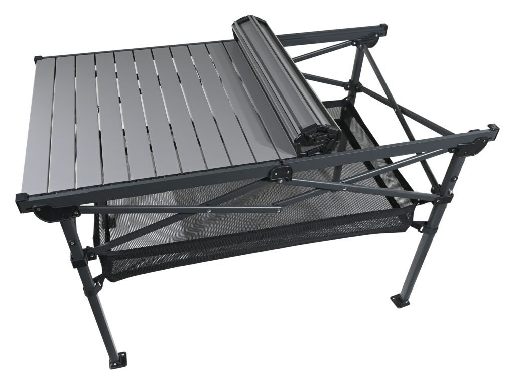 Składany stolik kempingowy Roll Due jest idealnym towarzyszem wygodnych chwil nad wodą, na kempingu lub w ogrodzie.