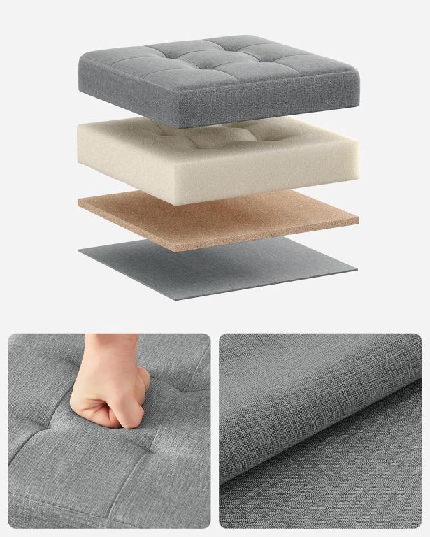Odkryj funkcjonalność i elegancję w jednym – składany taboret SONGMICS w jasnoszarym kolorze to doskonały wybór do każdego wnętrza. Zapewnia wygodne miejsce do siedzenia, a jednocześnie pozwala schować koce, książki czy drobiazgi. Idealny do salonu, sypialni lub przedpokoju, gdzie liczy się styl i oszczędność miejsca.