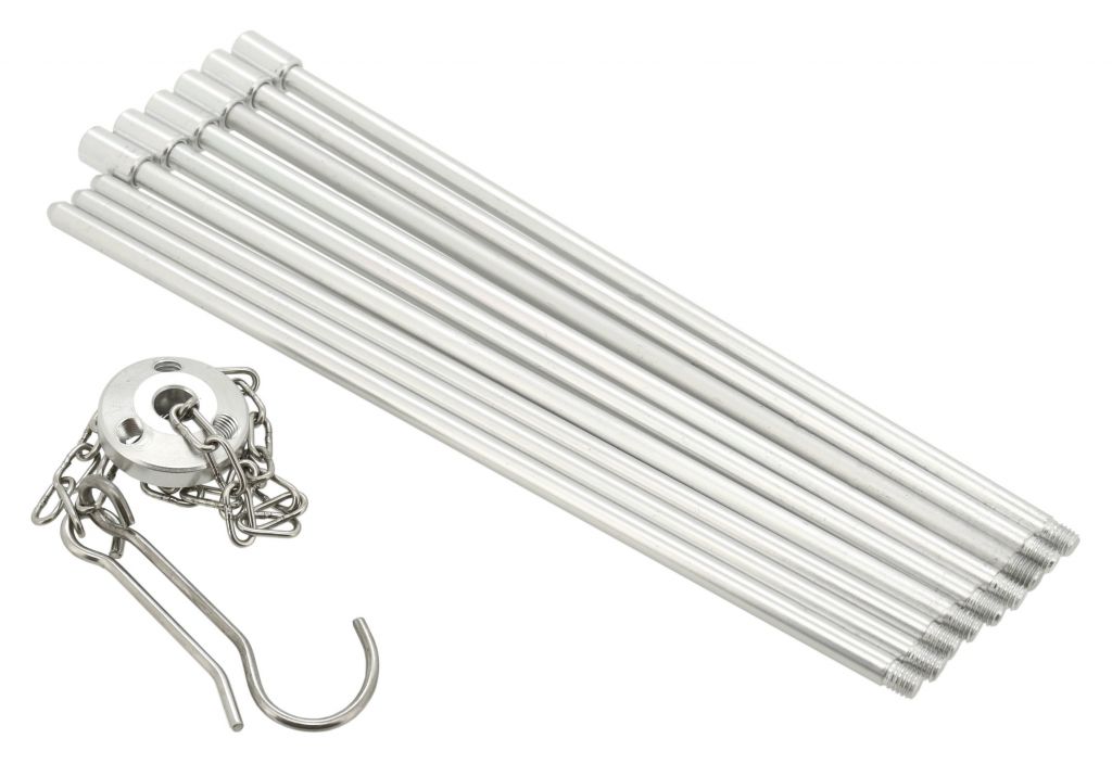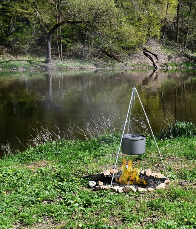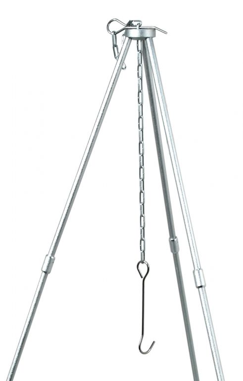 Praktyczny składany trójnóg to doskonały dodatek do kuchenki gazowej jak i kominka. Wykonany jest z trzech składanych nóg wykonanych z wytrzymałego aluminium oraz haka zawieszonego na łańcuszku o łącznej wysokości 86 cm po złożeniu. Po złożeniu urządzenie waży 460 gr mierzy 34 x 7 x 3,5 cm, dzięki czemu nie zajmuje dużo miejsca i można je mieć przy sobie w dowolnym miejscu.