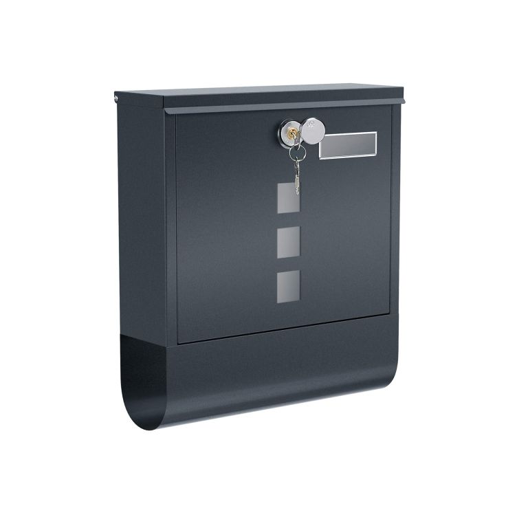 Nowoczesna skrzynka na listy SONGMICS w antracycie z uchwytem na gazety i okienkami.
