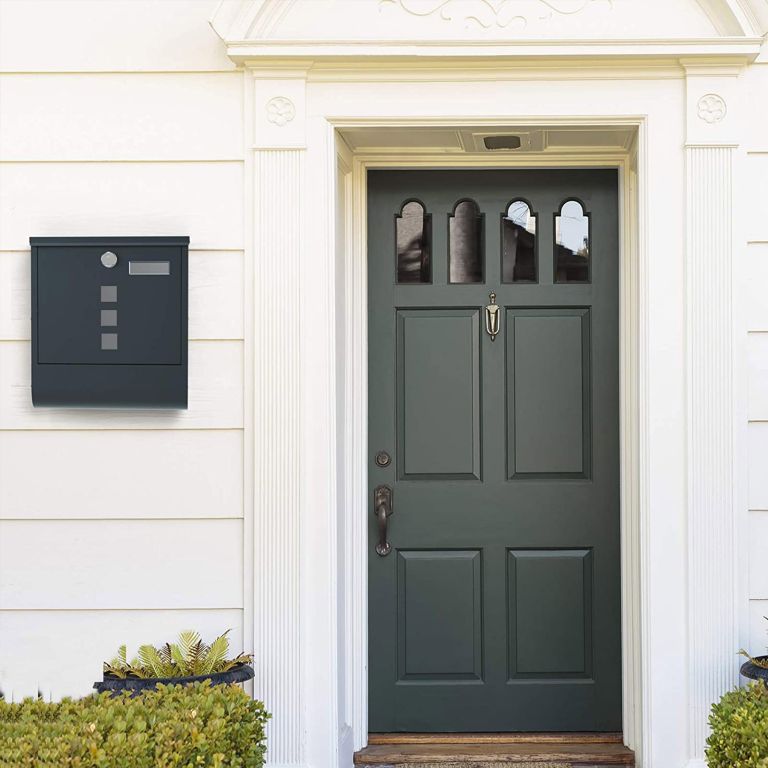 Dodaj styl i funkcjonalność swojemu wejściu dzięki skrzynce na listy SONGMICS w modnym antracytowym kolorze. Jej elegancki wygląd z okienkami i miejscem na nazwisko sprawia, że zawsze wiesz, kiedy czeka na Ciebie poczta. Praktyczny uchwyt na gazety pozwala zachować porządek i łatwy dostęp do prasy czy ulotek.