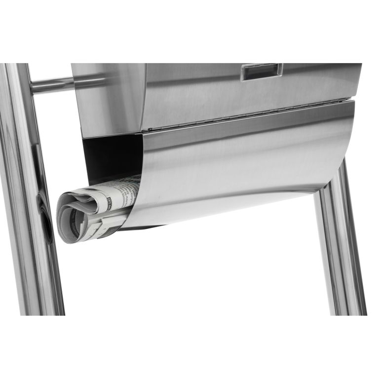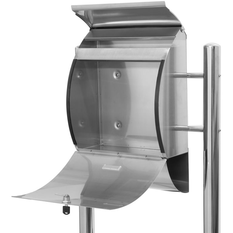 Stojąca skrzynka pocztowa na przesyłki formatu do A4 z nowoczesnym wyglądem. Została wykonana ze stali nierdzewnej, jest wytrzymała i odporna na rdzę. Zamykana na zamek, ma zakrywany otwór na listy. Można přimontovat i do ściany. Piękna ozdoba do Twojego domu lub firmy.