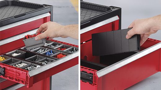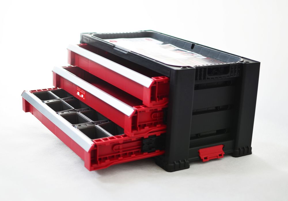 Solidny schowek wykonany z mocnego i wytrzymałego tworzywa sztucznego z trzema identycznymi szufladami. Nie może przegapić żadnej złotej rączki.