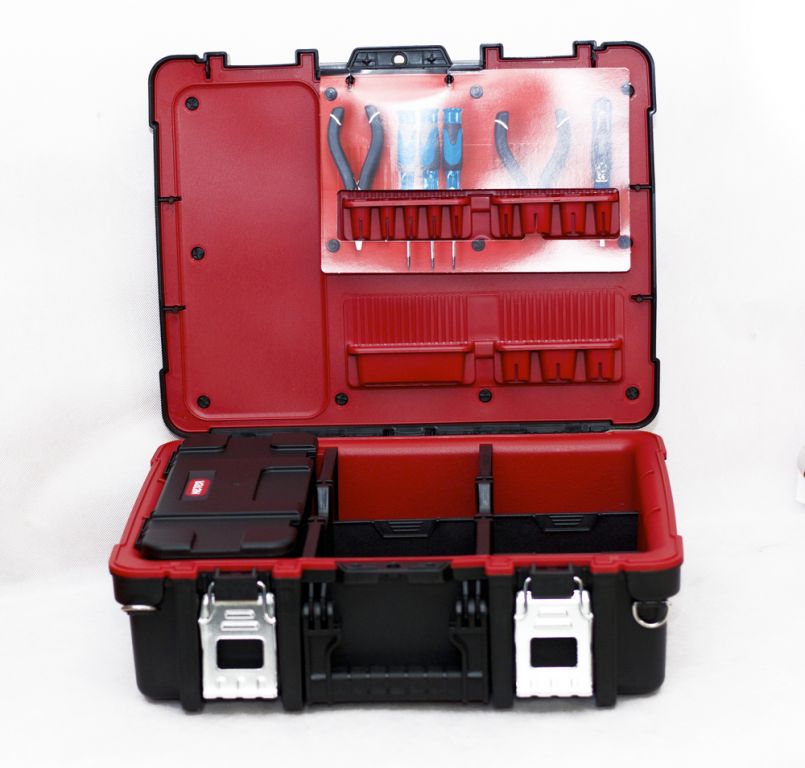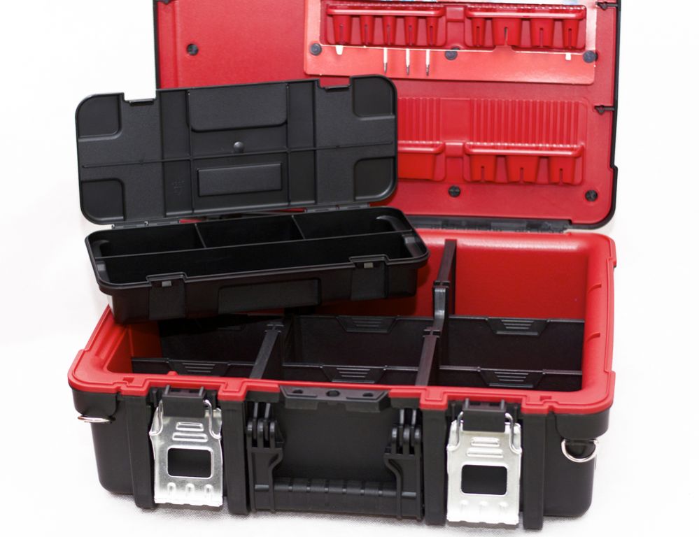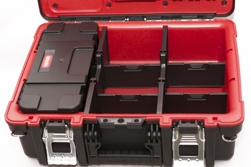 Praktyczne i jakościowe pudełko do warsztatu. Wnętrze przystosowane jest do przechowywania narzędzi różnej wielkości. Organizer w pudełku umożliwia łatwiejszy dostęp do najczęściej używanych narzędzi. Produkt wyposażony w wyjmowany organizer z przegrodami. Produkt wykonany z wysokiej jakości materiałów, co zapewnia jego stabilność i trwałość.