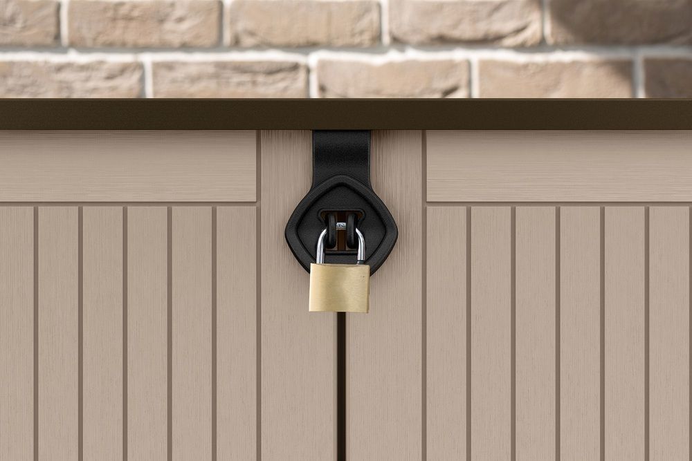 Szafa charakteryzuje się prostym i eleganckim designem, strukturą powierzchni przypominającą naturalne drewno. Możliwość zamontowania półki wewnętrznej zwiększa funkcjonalność produktu. Szafka sprawdzi się wszędzie tam, gdzie konieczne jest przechowywanie akcesoriów ogrodniczych, narzędzi czy pojemników na śmieci. Solidna rama chroni przechowywane przedmioty przed wilgocią, a wysokiej jakości tworzywa sztuczne zapewniają trwałość produktu na długie lata.