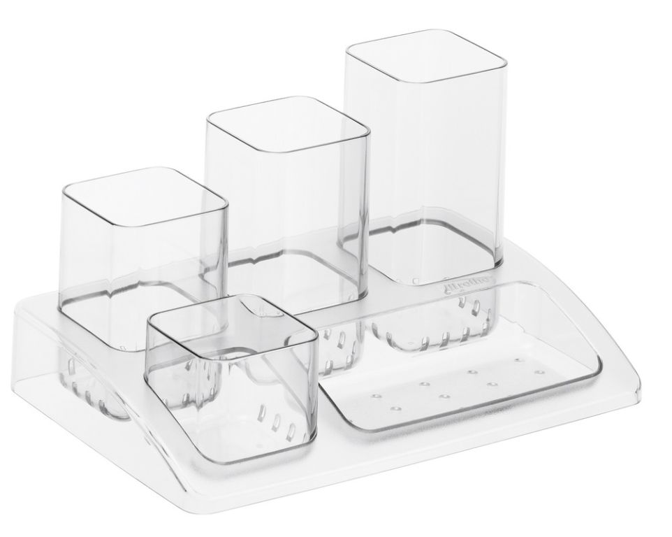 Zoptymalizuj swoje biurko dzięki eleganckiemu uchwytowi szwajcarskiej marki. Cztery przegródki o różnej wysokości i tacka do przechowywania ułatwiają