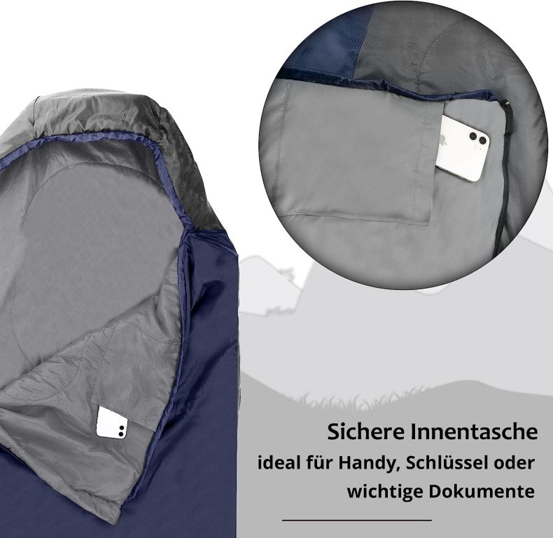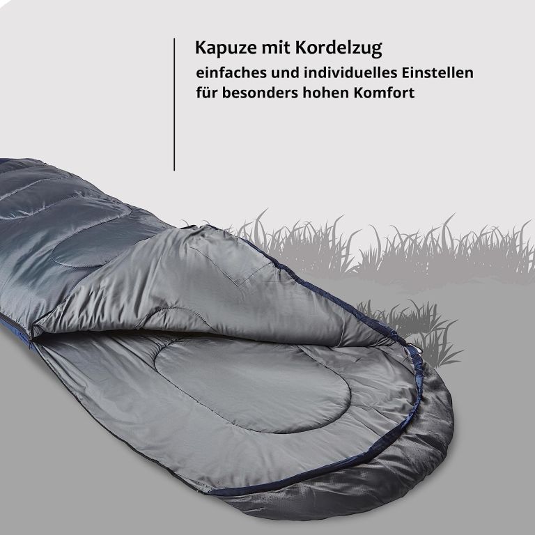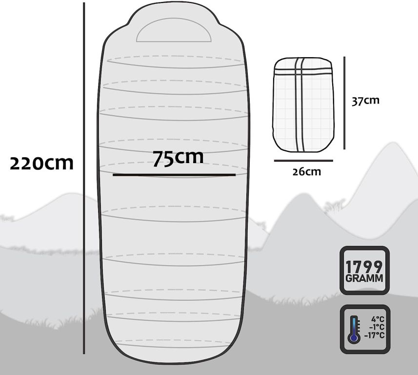 Wytrzymały materiał poliestrowy jest wodoodporny, wiatroszczelny i nieprzemakalny. Śpiwór wyposażono w dwukierunkowy zamek, zintegrowaną kieszeń na drobiazgi oraz worek kompresyjny dla łatwego pakowania. Odpowiedni do temperatur nawet do -17°C, łatwy w pielęgnacji i trwały nawet w trudnych warunkach.