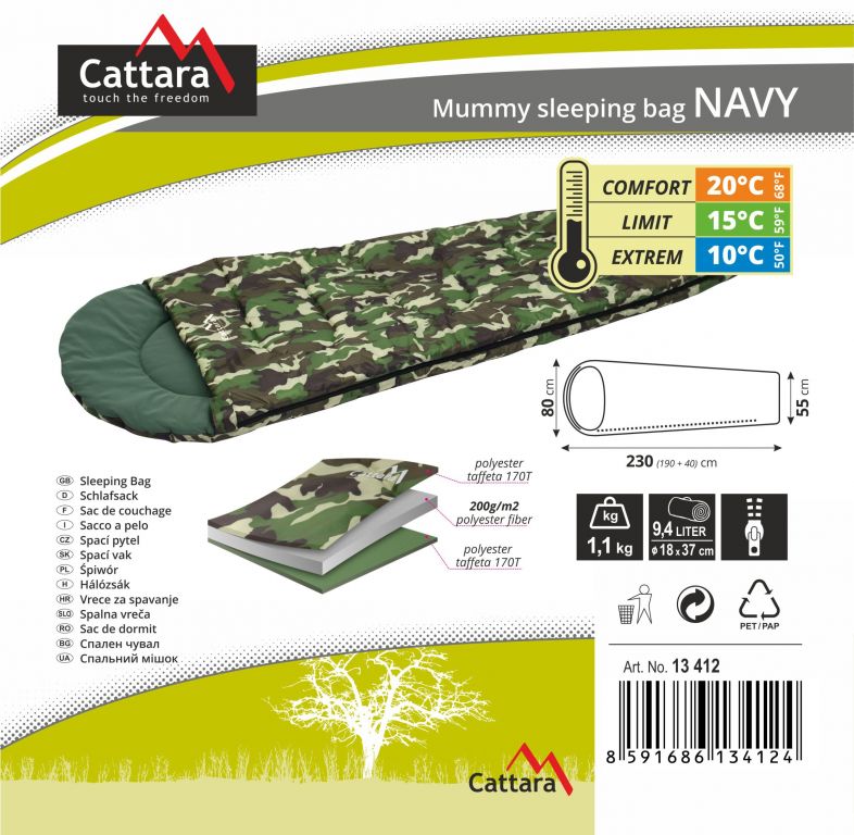 Śpiwór Navy, jak wszystkie śpiwory typu mumia, nadaje się szczególnie na dłuższe pobyty na łonie natury. Na komfort i temperaturę wewnątrz śpiwora wpływa odzież. Sen jest zalecany tylko w bieliźnie lub podkoszulku. Ważne jest, aby ogrzać śpiwór i nie ogrzewać niepotrzebnie ubrań. Śpiwór Navy wyposażony jest w trzy warstwy. Śpiwory wybieramy głównie ze względu na ich granice temperaturowe, gdzie komfort oznacza temperaturę, w której będzie nam wygodnie, granicę to temperatura, w której nadal będzie nam ciepło i wreszcie temperatura ekstremalna, która wskazuje maksymalna tolerowana temperatura.