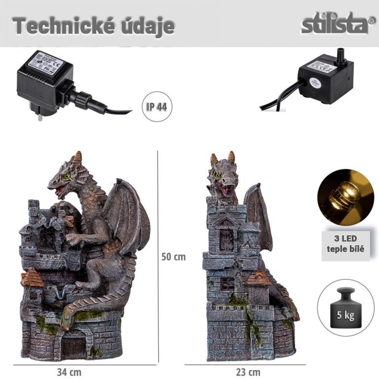 STILISTA Fontanna ogrodowa, 34 x 23 x 50 cm, Smok