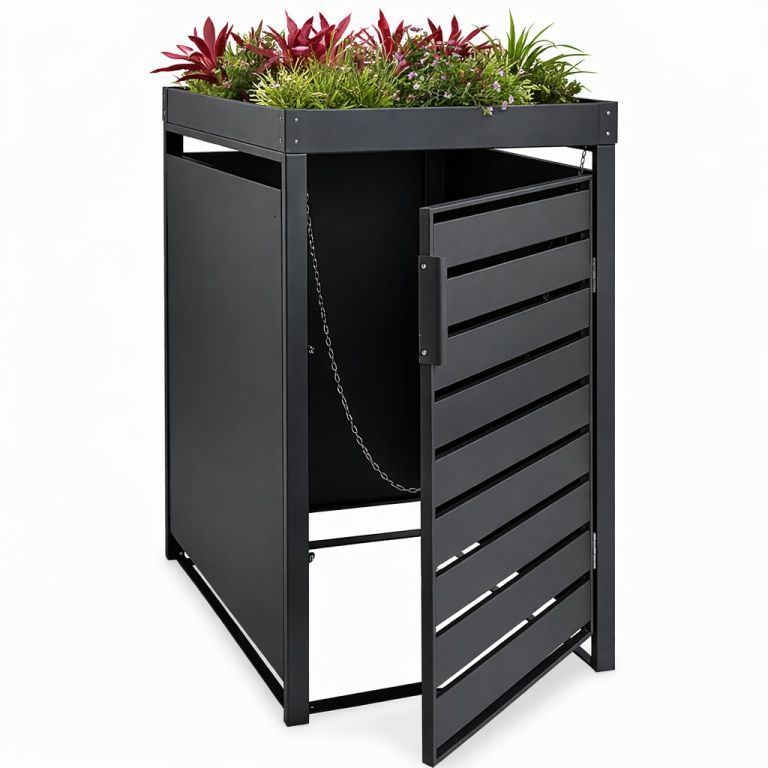 Ta skrzyń na pojemniki oferuje miejsce na jeden pojemnik na odpady o pojemności do 240 litrów.