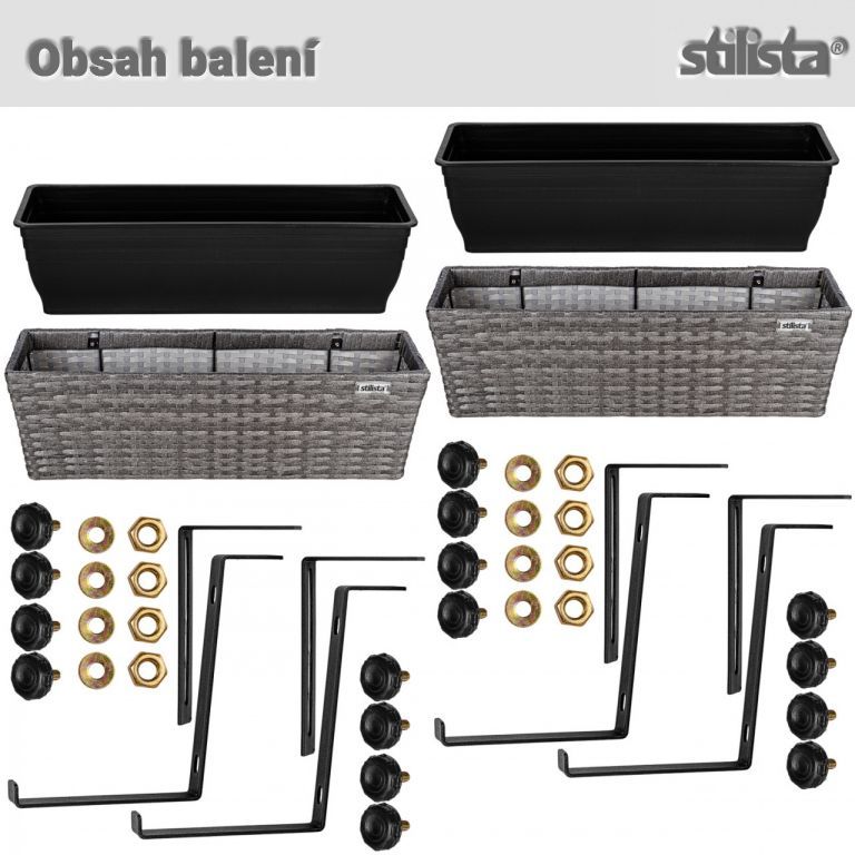 Syntetyczne włókno poliratanowe zachwyca doskonałymi właściwościami. Jest odporny na warunki atmosferyczne, promieniowanie UV, odpycha brud i jest łatwy do czyszczenia. Dzięki wyjmowanym plastikowym wkładkom sadzenie doniczek to pestka. Dostawa obejmuje regulowany metalowy zawias do mocowania doniczek na balkonie lub balustradzie.