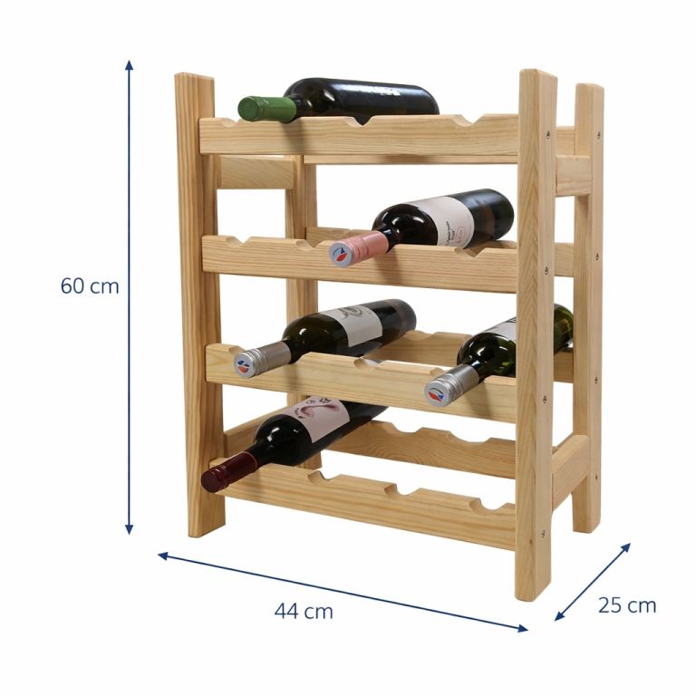 Stojak na 16 win z sosny, bez lakieru, czeska jakość, prosty montaż i trwałość.