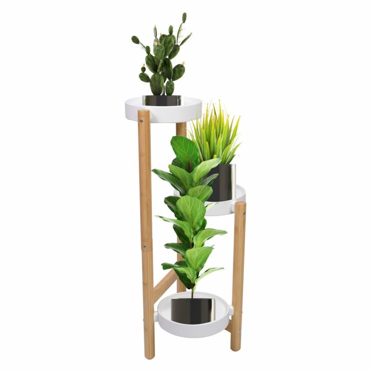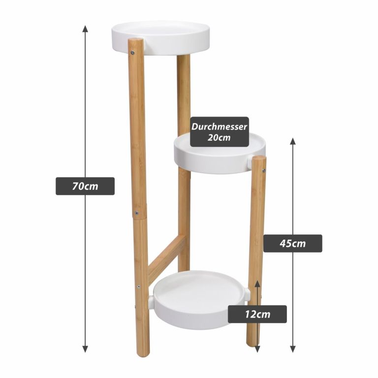 Dekoracyjny stojak na kwiaty z solidnego drewna bambusowego do salonu, sypialni, łazienki, ogrodu zimowego lub na balkon. Drewno bambusowe nadaje temu stojakowi naturalny urok i porządkuje parapety okienne. Dzięki różnym wysokościom, na tym pięknym stojaku na kwiaty można umieścić rośliny różnych rozmiarów. Prosty montaż pozwala na szybkie złożenie kwiatowej półki.