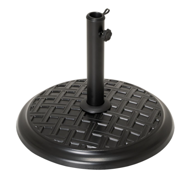 Ten solidny, okrągły stojak na parasole o wadze 15 kg wykonany z betonu nie tylko spełnia swoją funkcję jako bezpieczny uchwyt na parasol, ale także