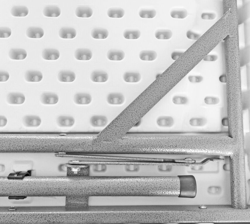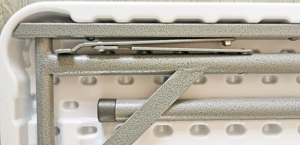 Składany stół wykonany z bardzo mocnego materiału HDPE ze stalową konstrukcją.