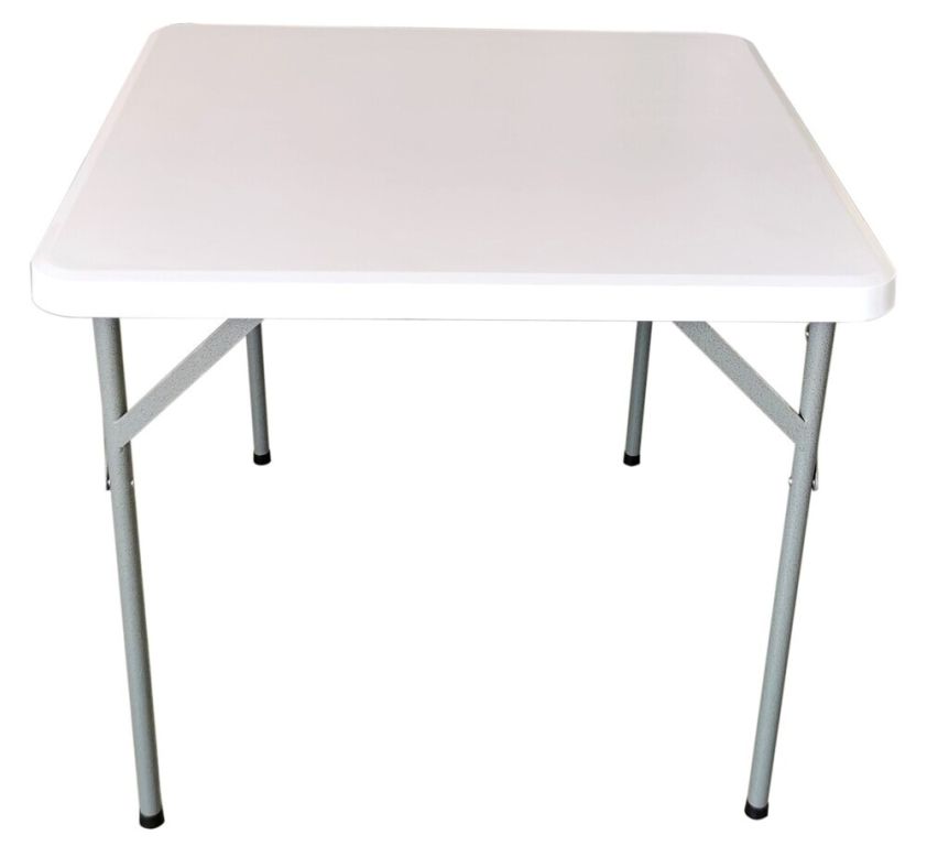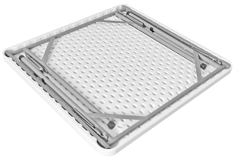 Składany stół wykonany z bardzo mocnego materiału HDPE ze stalową konstrukcją. Konstrukcja jest pomalowana farbą młotkową. Stół nadaje się do użytku zarówno wewnątrz jak i na zewnątrz. Idealne na imprezy cateringowe, kempingi, przyjęcia i konferencje. Stół jest bardzo łatwy do przechowywania dzięki możliwości składania - po złożeniu jego wymiary wynoszą 87 x 87 x 5,5 cm. Do stołu można dokupić krzesła cateringowe i stworzyć bardzo ładny, a przede wszystkim praktyczny zestaw.