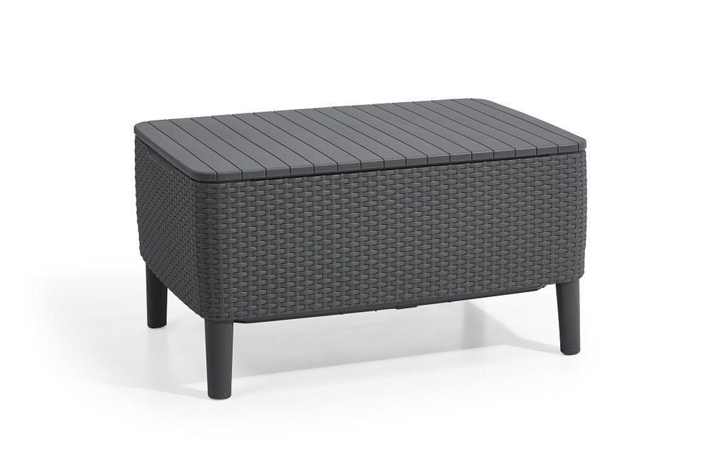 Jest to elegancki stół z imitacji rattanu, który służy również jako schowek. Nadaje się do uzupełnienia każdego tego rodzaju zestawu.