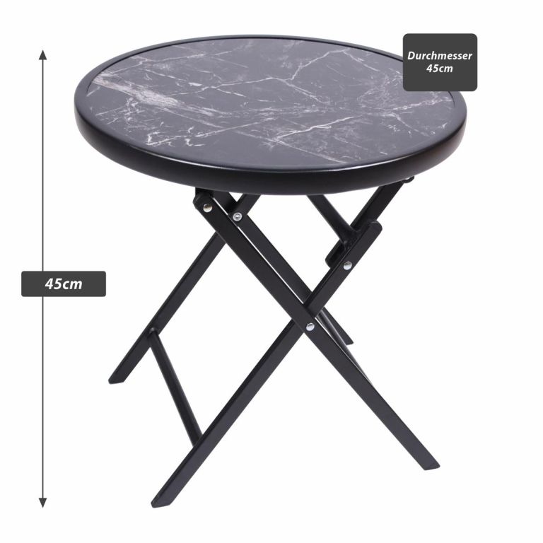 Stolik bistro ogrodowy, składany, Ø 45 cm, czarny marmur