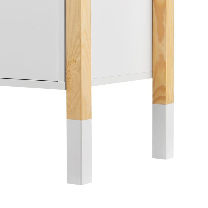 Stolik wykonany jest z wysokiej jakości drewna z połyskującym wykończeniem, co gwarantuje łatwą pielęgnację i trwałość. Stabilność zapewniają solidne nogi z drewna sosnowego. Kompaktowe wymiary i niska wysokość są idealne dla najmłodszych, którzy mają wszystko w zasięgu ręki.