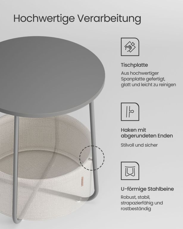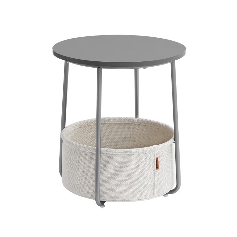 Stolik pomocniczy z koszem z tkaniny, idealny do przechowywania i organizacji. Stabilny i stylowy.