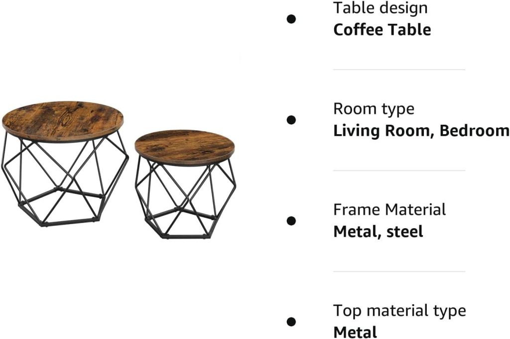Praktyczny zestaw stolików kawowych w stylu rustykalnym, trwałe i łatwe w montażu.
