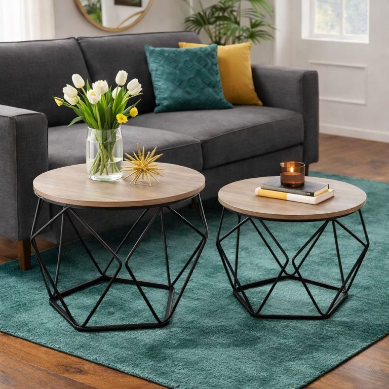 Odmień swój salon dzięki stylowym stolikom kawowym, które łączą ciepło drewna z surowością stali. Okrągłe kształty i rustykalny kolor sprawiają, że wnętrze staje się bardziej przytulne i wyjątkowe. To idealne miejsce na ulubione dekoracje, książki czy filiżankę kawy.